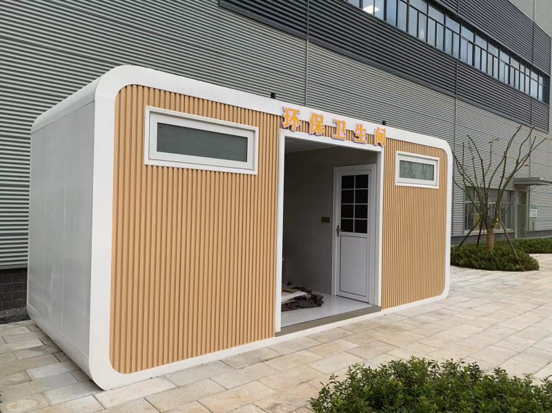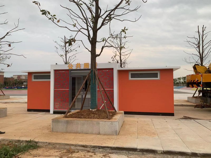 MORE拼裝廁所;在廠里做好各個廁所部件,再到現(xiàn)場組裝在一齊,適合不易運輸?shù)拇笮蛶_@座箱式廁所,女廁5個蹲位內配工具間,男廁2個蹲位+2小便斗,第三衛(wèi)生間由殘疾馬桶、助力洗手盆和兒童馬桶、兒童洗手盆外加嬰兒臺等設施。廁所前后有窗,通風采光,前部走廊裝有屋檐,防雨防曬。此廁所位于公路綠道邊,整體大氣,功能齊全,造型美觀,是一道難得的靚麗景觀!